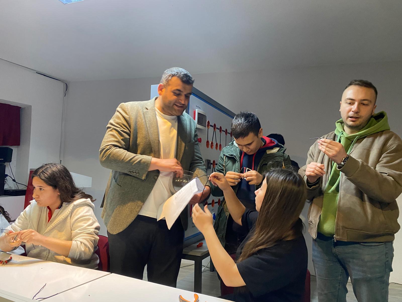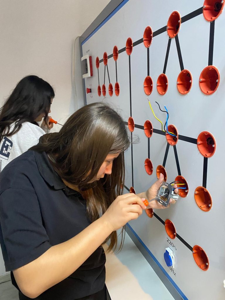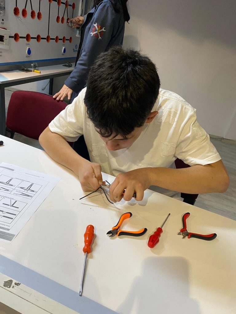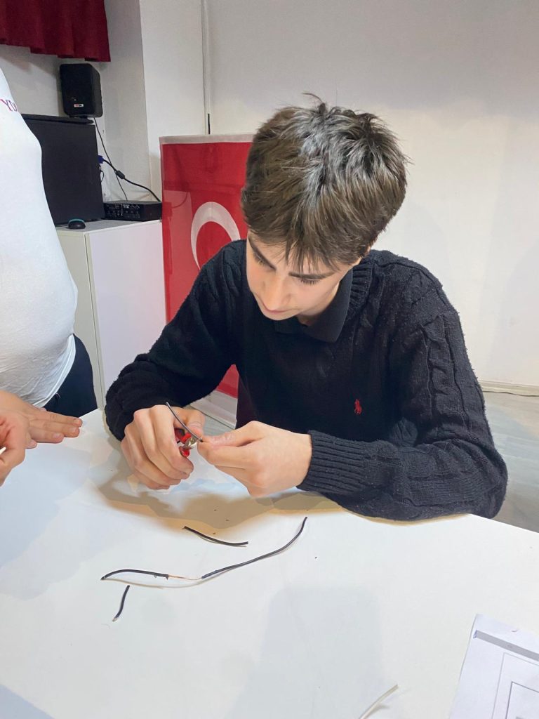 Okulumuz Elektrik-Elektronik Teknolojileri Alanı kapsamında, 9-A ve 9-B EET sınıfı öğrencilerimizin katılımıyla düz ek, “T” ek kablo bağlantısı ve priz montajı yarışması gerçekleştirildi. Uygulamalı eğitimin önemini pekiştiren bu etkinlikte öğrencilerimiz, hem teknik becerilerini sergileme hem de öğrendiklerini pratiğe dökme fırsatı buldu. Büyük bir heyecan ve rekabet ortamında gerçekleşen yarışmada tüm öğrencilerimiz aktif olarak yer alarak başarılı bir performans ortaya koydu. Yarışmada hem erkek hem de kız öğrencilerimizin gösterdiği ilgi ve başarı dikkat çekerken, özellikle kız öğrencilerimizin alandaki özgüveni ve yetkinliği gurur verici oldu. Bu durum, mesleki eğitimde fırsat eşitliğinin ve çok yönlü gelişimin en güzel örneklerinden biri olarak öne çıktı. Etkinlik sonunda dereceye giren öğrencilerimiz kantinden alışveriş çeki ile ödüllendirildi. Bu anlamlı organizasyonda emeği geçen öğretmenlerimize ve katılım sağlayan tüm öğrencilerimize teşekkür ederiz.